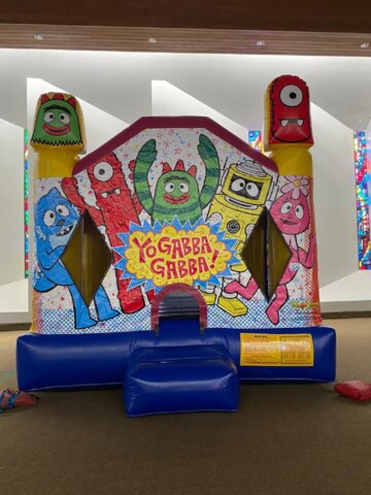 Join DJ Lance Rock and his friendly toy monster friends Muno, Foofa, Brobee, Plex, and Toodee in this awesome full faced bounce house.
