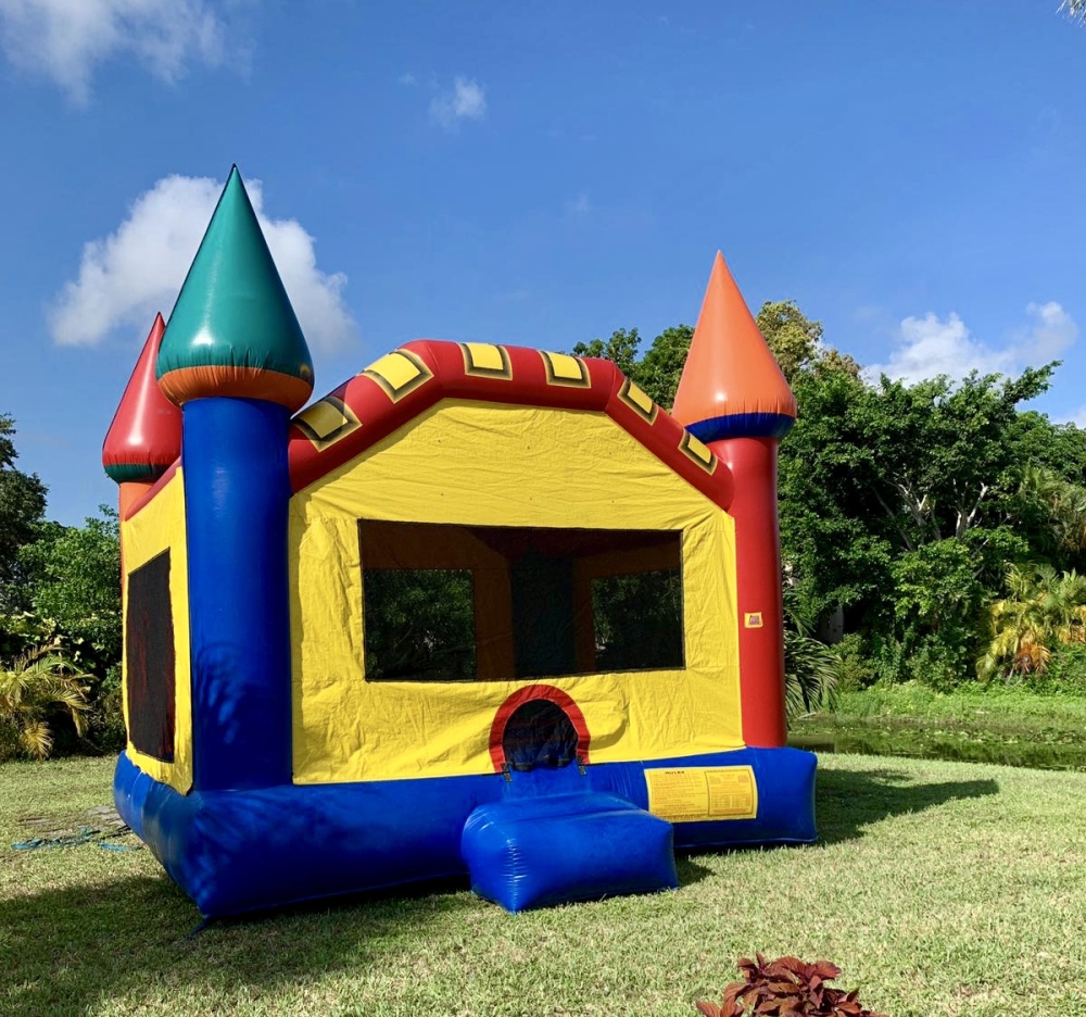 This Castle Bounce House is 360-degrees of brilliant and joyful regal fun for all young royalty! This majestic moonwalk is fit for any king or queen, with colors of blue, green, red, yellow and orange, along with four tall spires to make any palatial party a success. Promote healthy activity and entertainment with easy setup and safe jumping in this palatial bouncer.